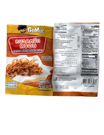 Crispy Squid Tentacles Original is a Thai seafood snack made from real squid that is carefully seasoned and processed to achieve a soft, tender texture. The squid is marinated with a balanced blend of savory seasonings, delivering a rich umami flavor that highlights the natural taste of squid. It is ready to eat and commonly enjoyed as a convenient snack or light treat.